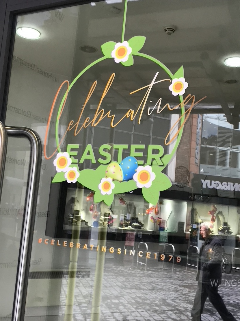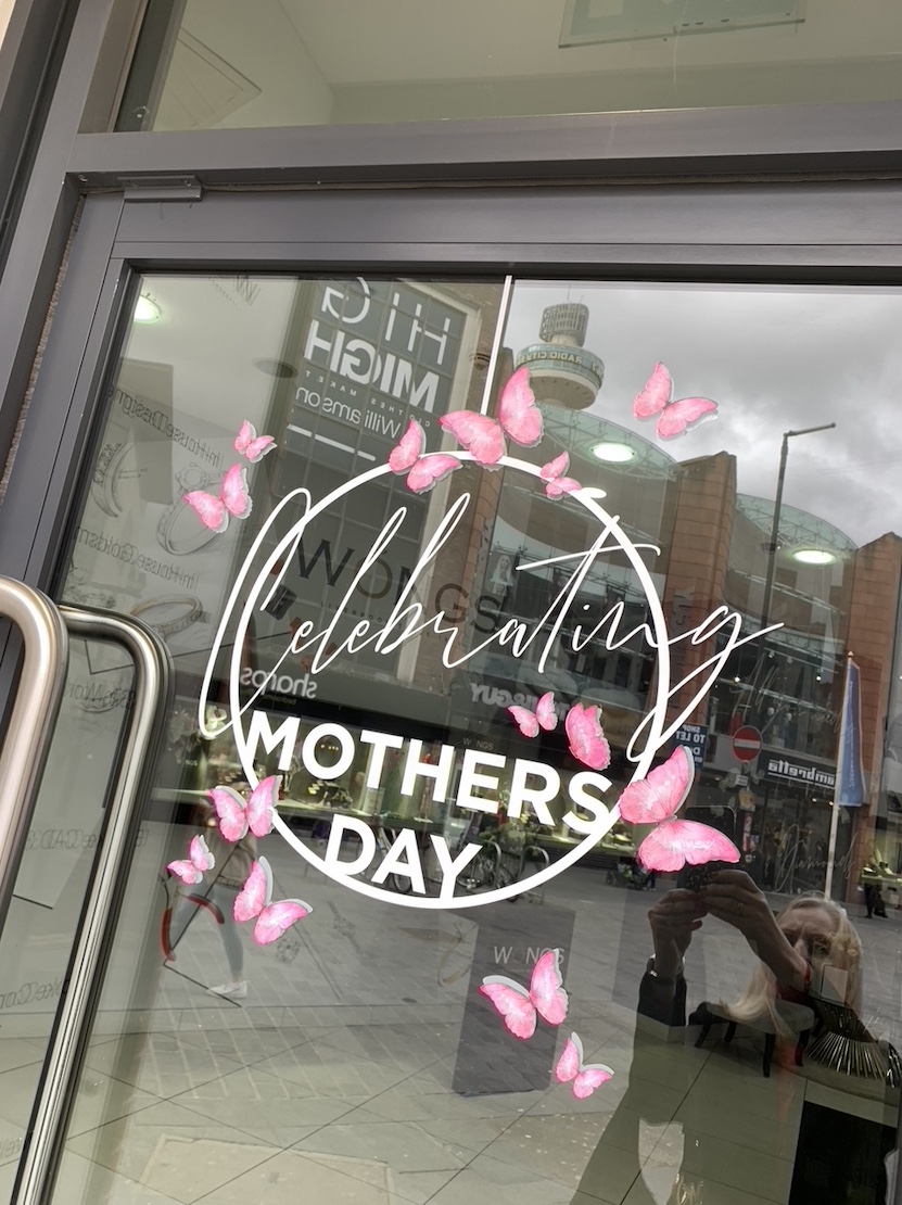 If you are looking for an easy way to talk to your customers about calendar events such as Mother’s Day, why not consider a door or window decal. They can be designed to suit your business and can include your logo.